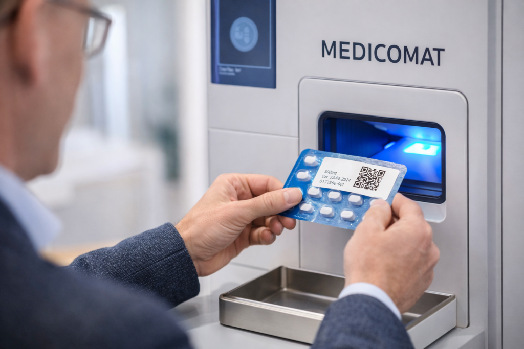 Sogar rezeptpflichtige Medikamente sind möglich – vorausgesetzt, das Rezept wurde vorab vom Personal digital verifiziert. Ein „Einfach-mal-shoppen“ wie am Snackautomaten ist aus Sicherheitsgründen ausgeschlossen.